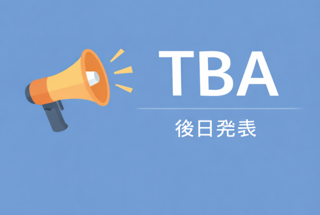 TBAはTo Be Announcedの略で、日本語では「後日発表」「追って発表予定」といった意味になります。