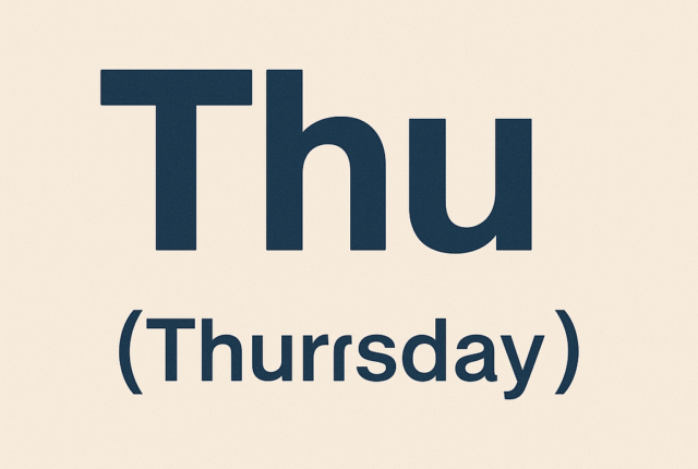 会話や文章中で「Thu」と書くことはほとんどなく、 表記専用の略語として使われるのが一般的です。