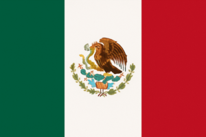緑・白・赤の三色は独立・信仰・統一を象徴。中央の国章は「サボテンの上で蛇をくわえた鷲」という古代アステカ伝説に基づきます。