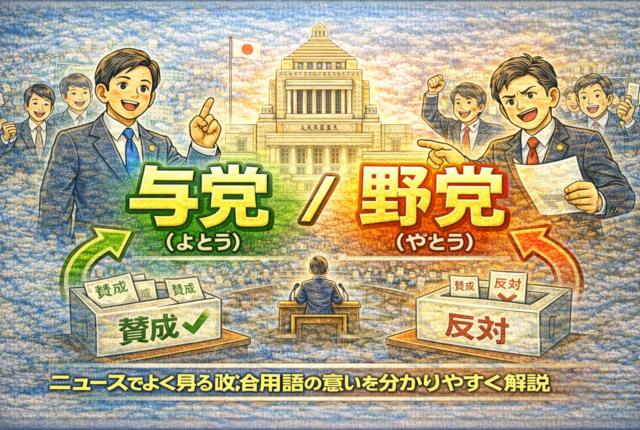 与党と野党は、政治ニュースを読み解くうえで欠かせない基本用語です。